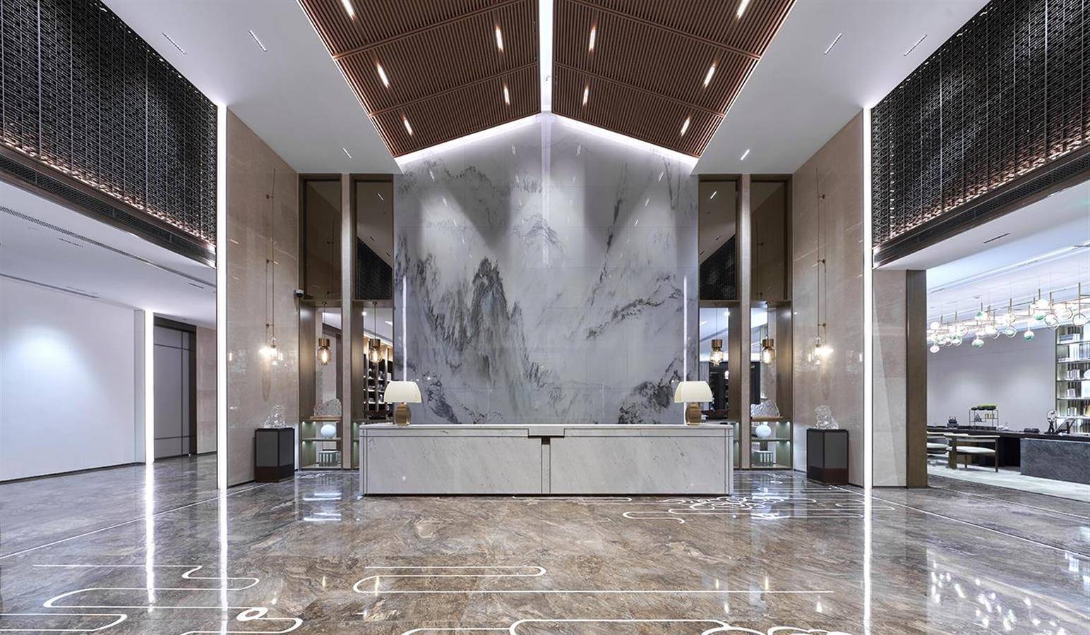 意境相合、道器并举。作为项目建筑风格与居住形态的凝萃,生活美学馆体现了品质营建的内涵,即对于居住者内心归属感、自由感、身份感和个人价值实现的尊重。设计构建起适合人类生存并促进人性发展的人居环境,为人性的向善和美好提供居住层面的支持,这也是物我相融、情境相寄的居住模式的探索性尝试。
